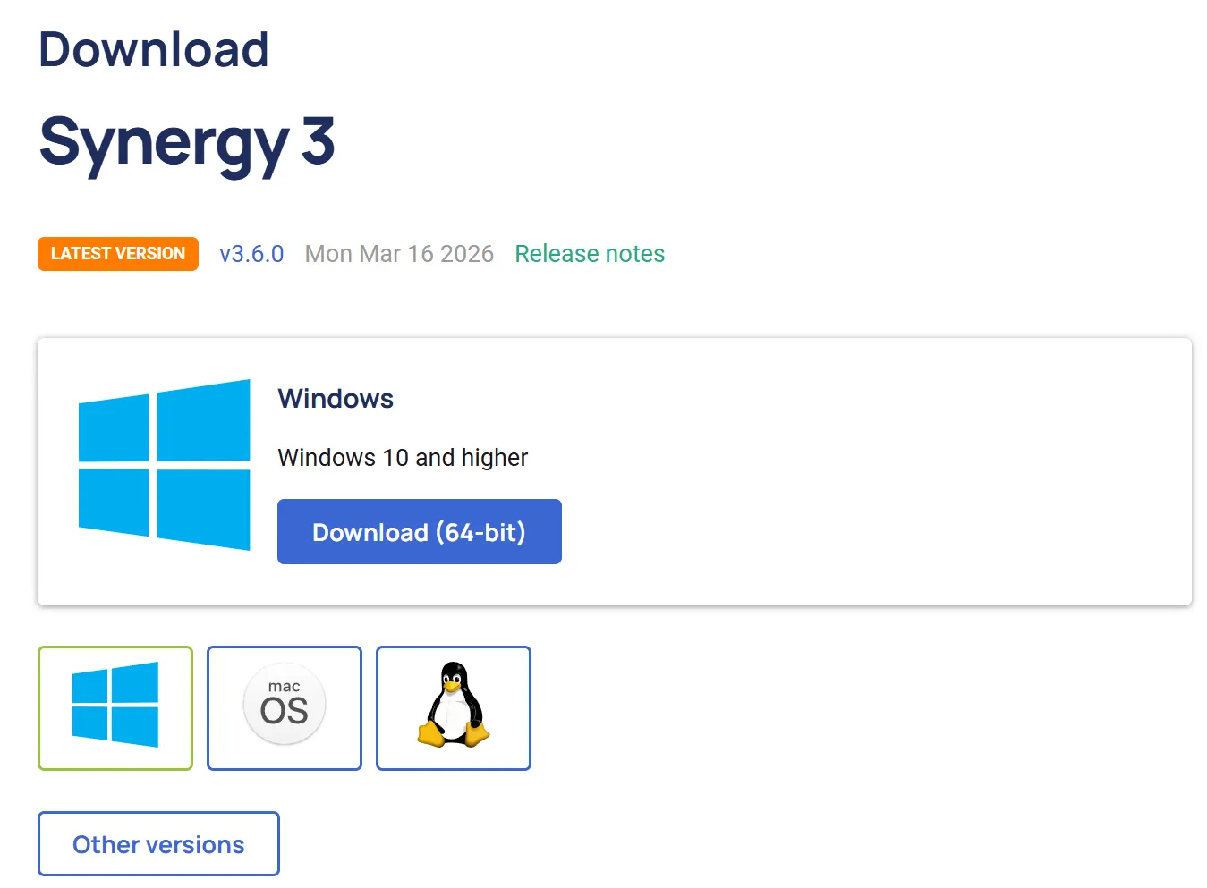 - 官方下载地址:https://symless.com/synergy/download